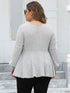 Plus Size Ribbed V-Neck Long Sleeve Blouse